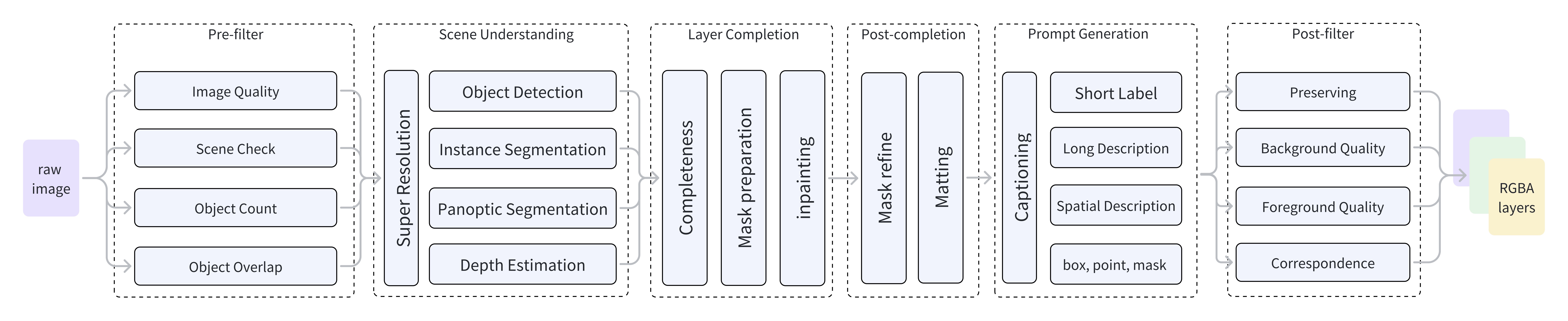 We introduce a scalable and modular automated data engine capable of generating diverse, realistic, and high-fidelity RGBA layers from natural images at scale.